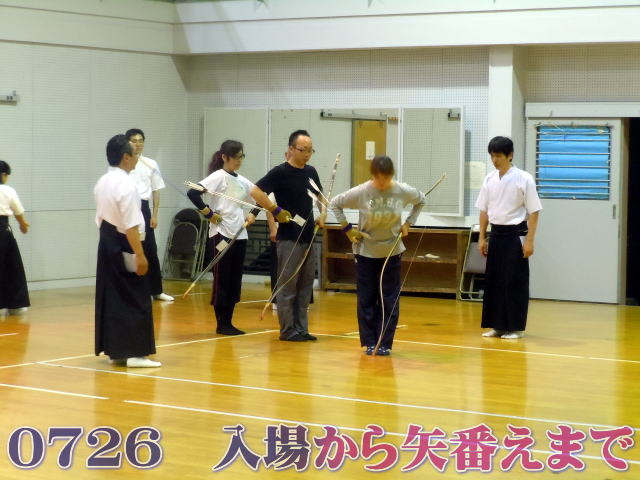 入場から矢番えまでの連続動作の練習です。